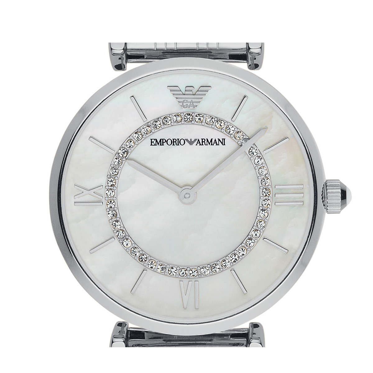 每款EMPORIO ARMANI的精致手表都是由细节对齐而成,细致又不没有累赘感。表盘采用珍珠贝母精致打造,点缀着璀璨水钻,耀眼的光彩绽放出来。金属质感的指针以及罗马数字的刻度,以流光溢彩的表盘相得益彰。表冠次用抛光工艺制作而成,不锈钢表身精致修饰质感表冠。整体优雅大气。