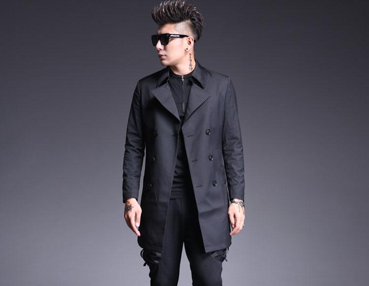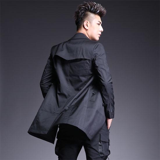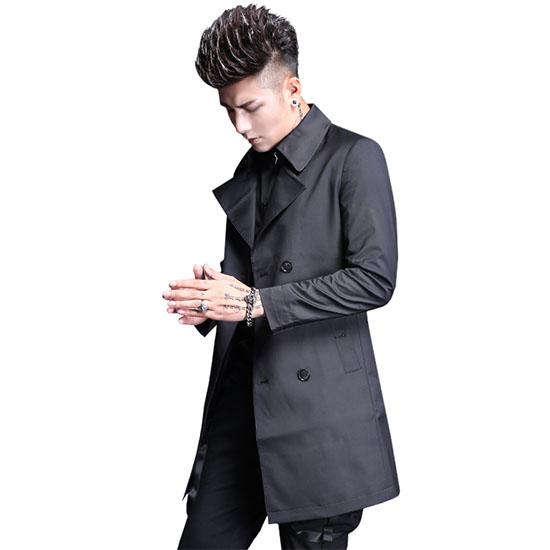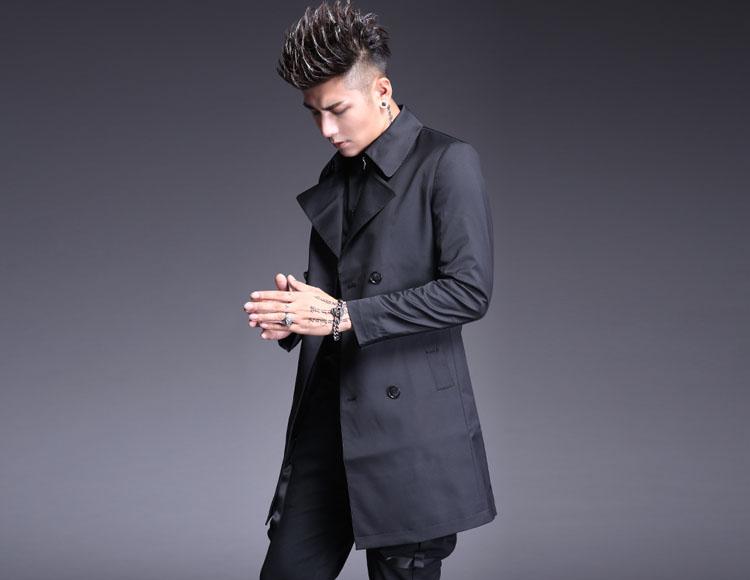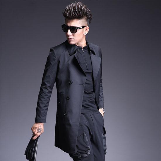 风衣采用涤纶面料,使衣身的纯黑色调更具光泽感,看起来更上档次,搭配其他单品也不会被抢去风头。内里可以选择一件立领T恤,不仅可以填补颈部的空缺感,也能有效起到防风御寒的作用。下身随意搭配一条同色调的休闲裤就非常有型,全身黑色调可以使风格得到统一,更加凸显出大气内敛的格调。