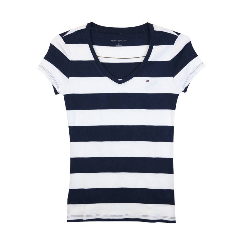 经典条纹元素T恤,丰富视觉层次感,还带来几分复古怀旧的味道,上身帅气又充满亲和力,还型格尽显!融合简单大方的款式,可塑性强, 可单穿可内搭的。Tommy这款女士条纹T恤,深蓝色和白色相间有种大自然的清爽感,简洁利落很有线条感,简单的进行搭配就能穿出随性时尚感,上身舒适还很显瘦。