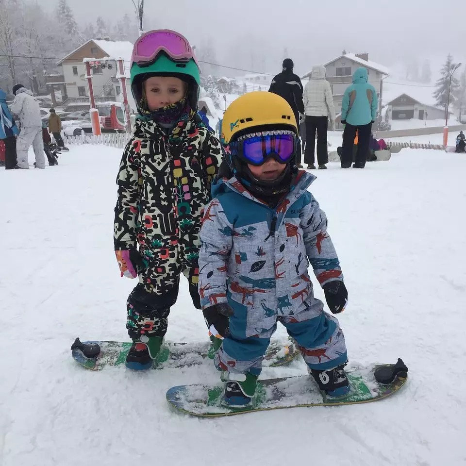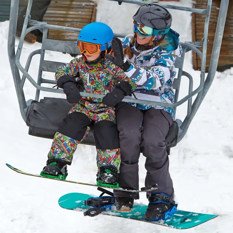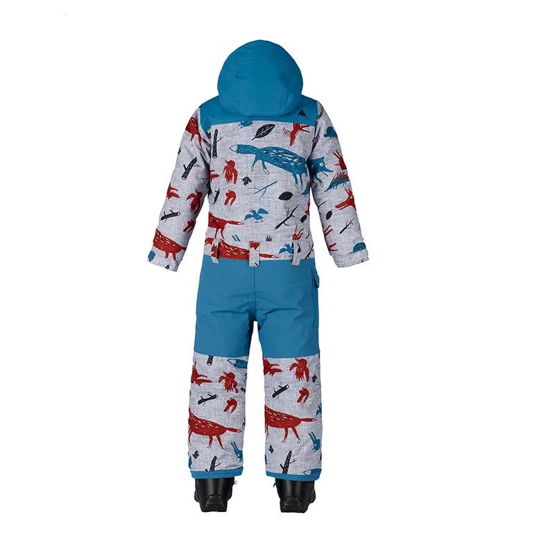 采用带帽连体设计,让宝宝行动更自如,而且保暖防风性能好。袖长和裤长拆开红线可延伸4cm,供宝宝成长。腰部有手套挂环,方便宝宝携带滑雪手套。防磨膝盖和臀部设计,让滑雪服经久耐穿。