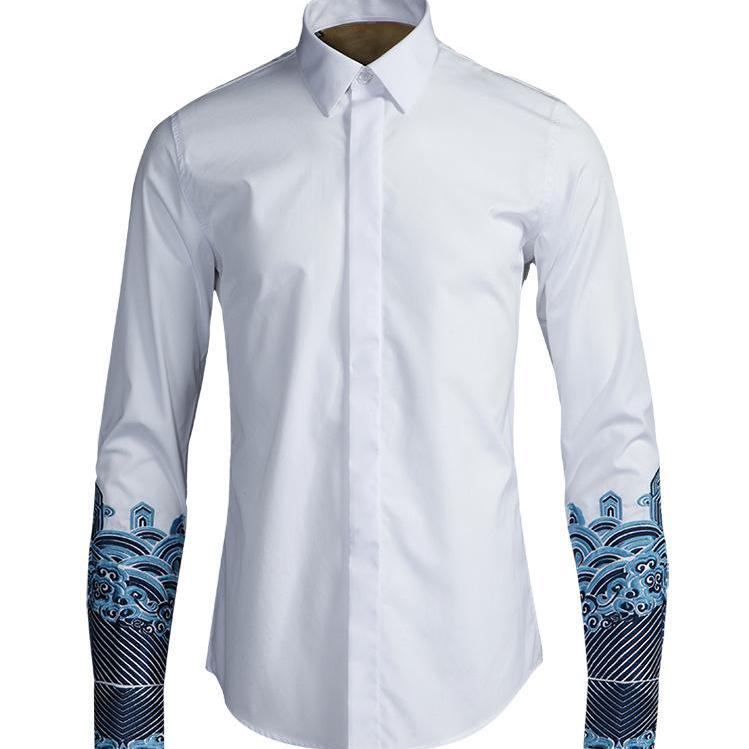 这款衬衫的设计,看似简约而不简单,方领的翻领设计,具有成熟感。中国风的重工高精度祥云刺绣设计,具有独特的个性,修身的版型结构,展现完美体型,甄选了上乘精梳棉,面料天然选材爽滑透气,舒适度极佳,修身立体裁剪设计,潮流精工衬衫设计,印花新工艺,时尚帅气精神。