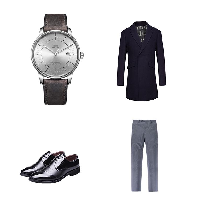 当你搭配这款休闲手表时,可以在上身搭配一件翻领大衣,时尚的同时还能增添商务气质;下身搭配一条直筒长裤和一双系带皮鞋,不仅可以衬托出笔直腿型,还能提升绅士范。