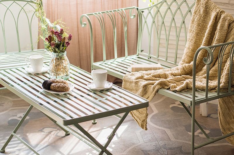 在世俗里奔波,总需要一处安放灵魂的角落,用一套复古风的铁艺桌椅,构筑闲适悠然的生活。可搭配一块经典而不失格调的百叶屏风,将常春藤从上方随意的垂落,仿若置身于大自然的怀抱,享受身心上的舒畅。长桌上可摆放一束娇艳欲滴的鲜花,再简单地配以洁白瓷器,装上可口的甜点及香醇的咖啡,倚坐在椅子上,盖上一块休闲毯,看一本中意的书籍,这不就是世外桃源的模样?