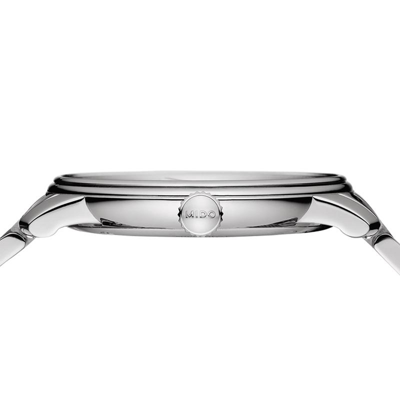 线条流畅的钢带贴合手腕的弧度,设计灵感来源于意大利著名建筑;烤蓝秒针十分醒目,举手投足间散发绅士的典雅气息;三点钟方位便于查看日期,不错过任何精彩的瞬间。