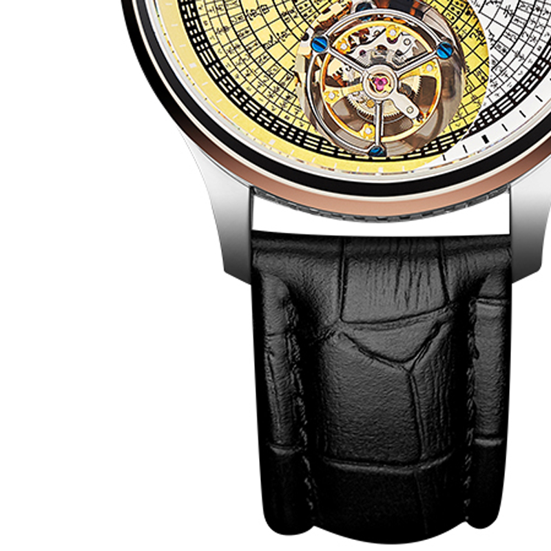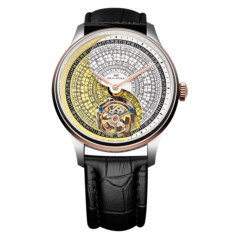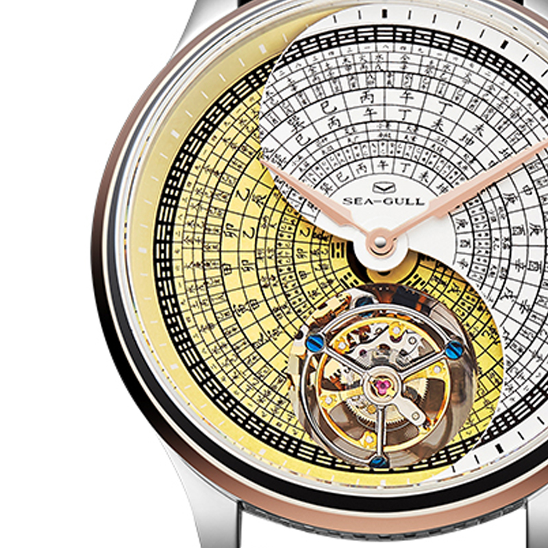 这款Seagull的18K金太极倾角陀飞轮男表,独特的表盘设计,更加引人注目,内容功能强大,信息容量大,饱含这文学的中国风;表盘低部的紧致机芯设计,更是展现出律动,让你亲眼目睹制作的精湛魅力。当然金色与白色形成的太极阵,可谓出街十分吸睛,并彰显独一无二。