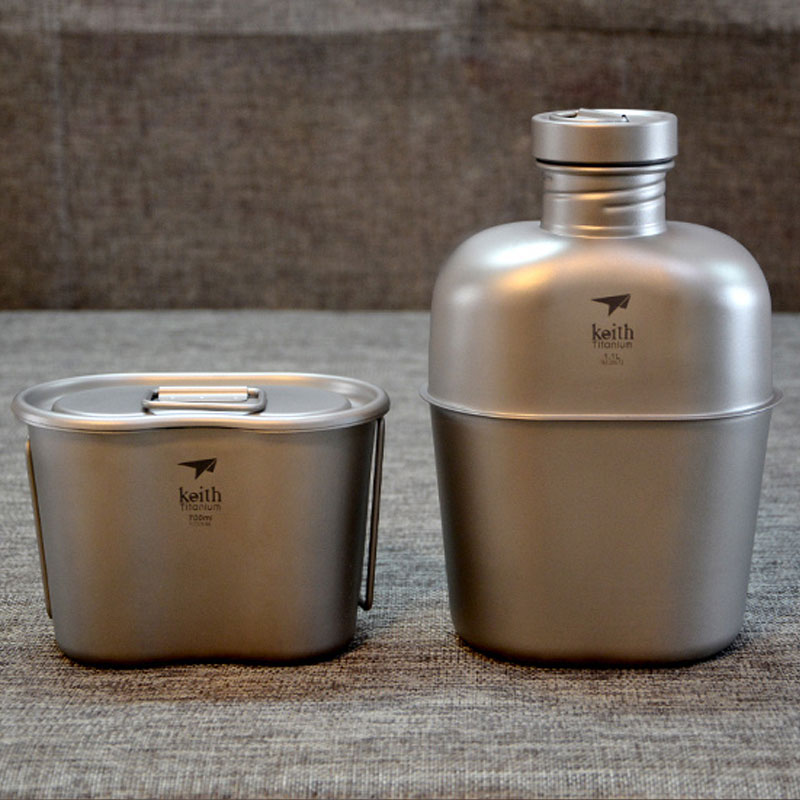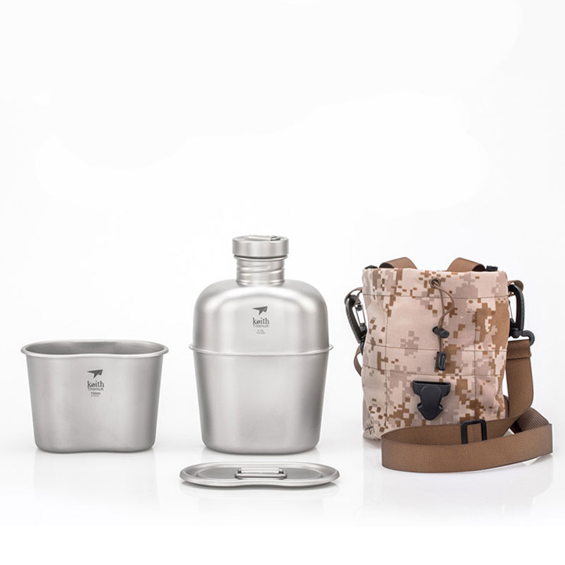 Keith的所有产品都基于环保的理念制作,在这款产品上依旧选用钛金属作为基础材料制作,依照78式军用水壶的外观制作,由于钛金属材料内部结构稳定的特点,保证了水壶坚固的性能,轻松应对尖锐的户外环境。并且十分轻量,携带极其方便。