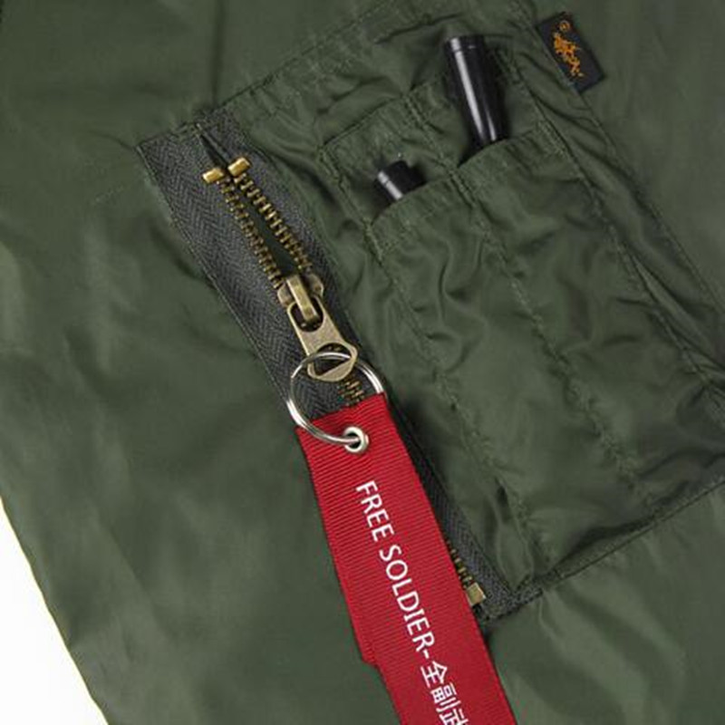 经典地勤款MA-1飞行员夹克,搭载着高品质的黄铜拉链,流畅顺滑,结实耐用。细节处的锁边采用弹力螺纹材质进行拼接,穿着舒适,锁温保暖。左臂添加标志性的口袋,诠释复古风尚。