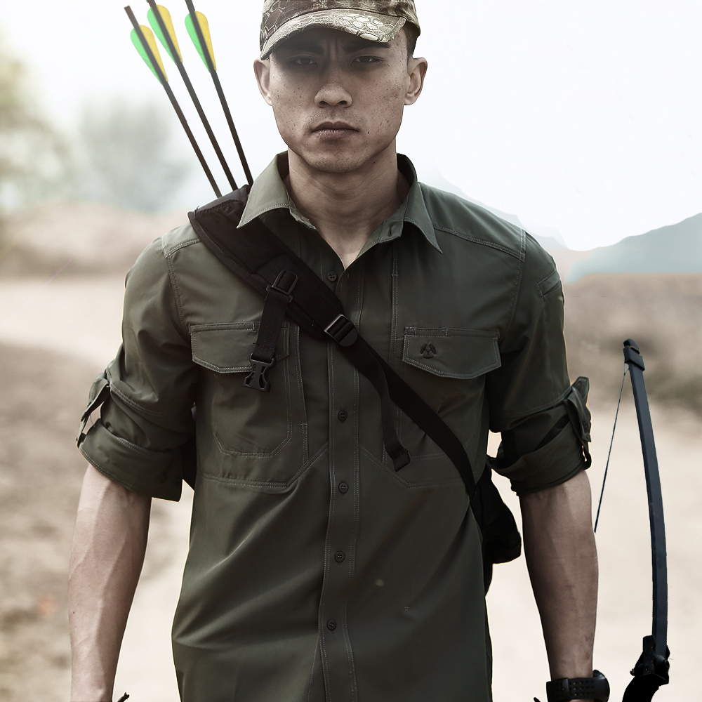 胸前对称双口袋设计,在口袋内侧,双开隐藏式内袋,装载能力强大,便捷防盗,袖口挽起,可扣于肘部纽扣,在必要及工作时非常方便,肩肘部添加外袋,可装小物方便快捷。