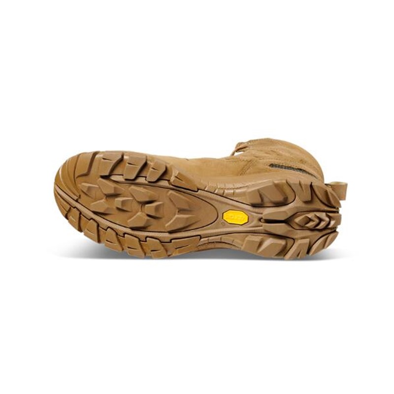 靴子的中足部位添加曲线形的系带系统,全面提高对脚掌的包裹性,避免移位打滑。立体挺括的后跟,利于改善稳定支撑性,久穿不易变形。全掌搭载着VIBRAM橡胶大底,抓地力出色,耐磨防滑。