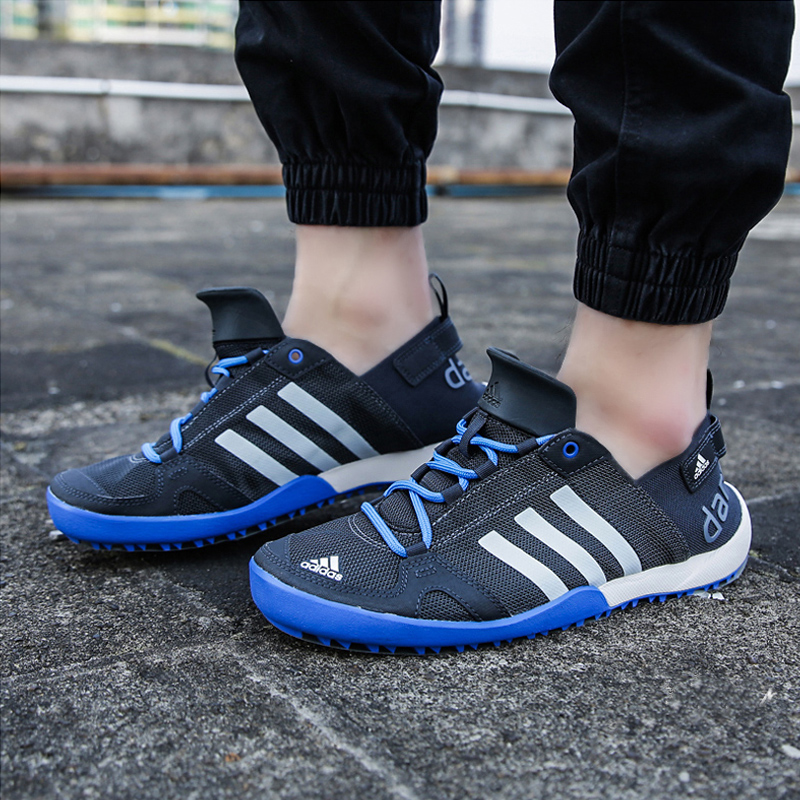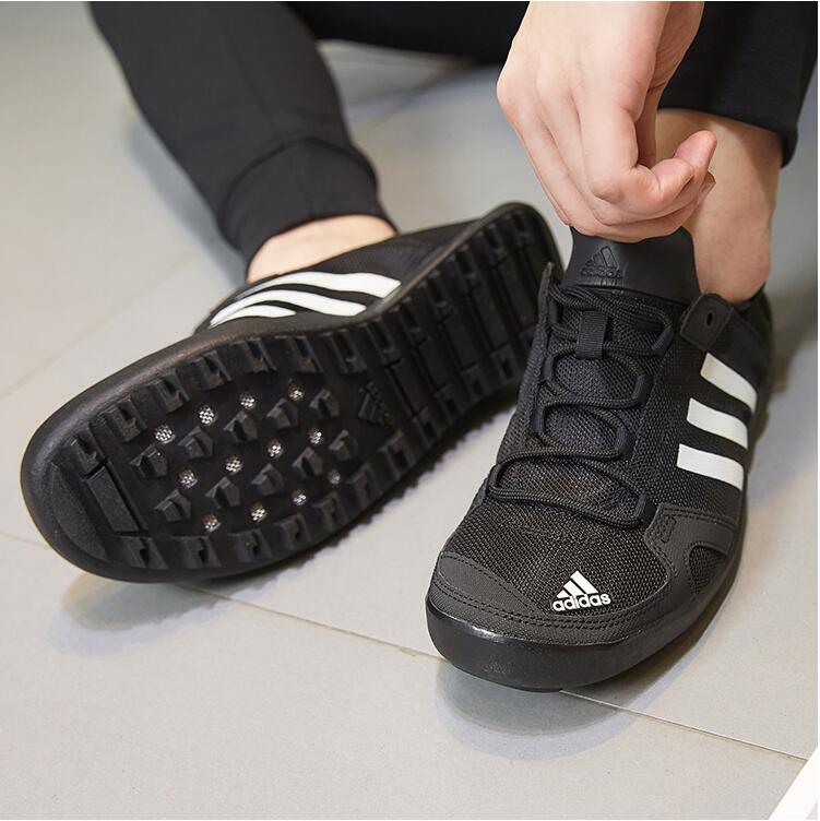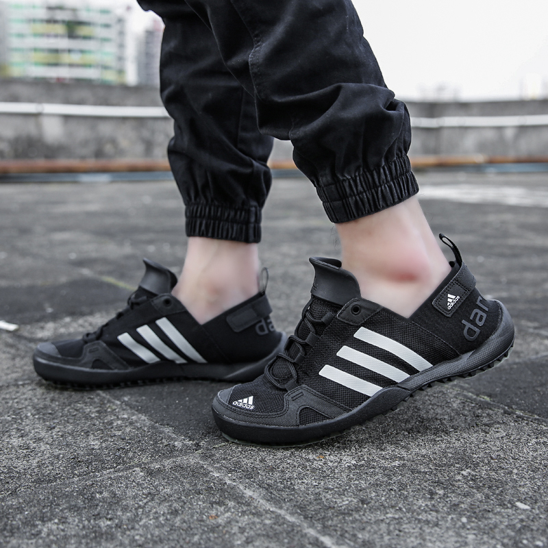 对adidas Climacool Daroga TWO 13越野溯溪鞋的第一个好感来自外形,灵动的造型、鲜明的对比以及经典的LOGO打破了一般户外鞋沉闷的设计风格,虽然少了一些“户外感”但也更适合日常的穿着和搭配。