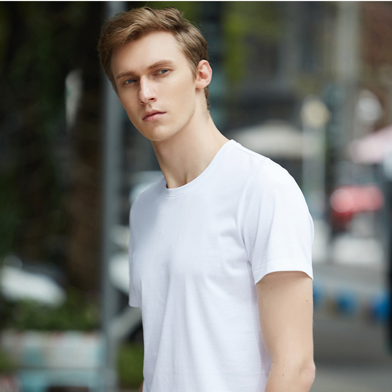 这款T恤采用了经典的小圆领设计,穿起来舒适而挺括,立体的肩部设计,让肩部挺拔不紧绷,时尚袖口设计,高密车缝线加上双针车线,不易脱线散边。