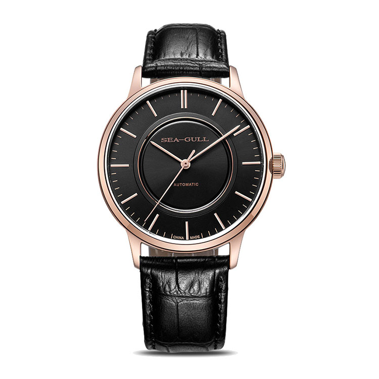 简约的外观设计,利落三针以及品牌字母logo组成的功能盘,可以给人简单又不失稳重的感觉。螺纹表冠,设计比较细腻贴心,调时更加顺手方便。合成蓝宝石表镜,透亮晶莹,品质感好。镂空机芯,机械运转之美尽在掌握之中。