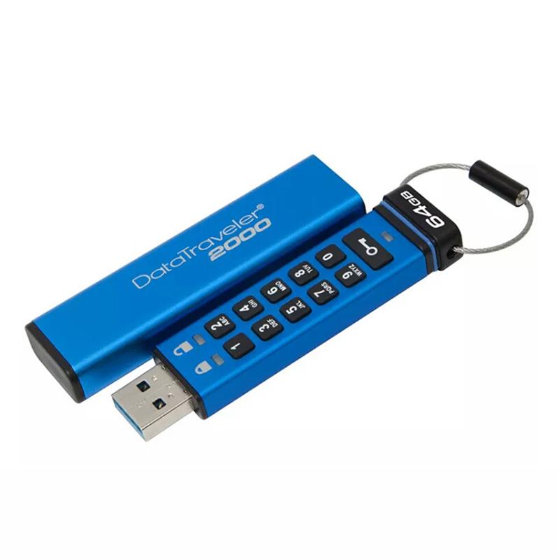 金士顿 DT2000拥有坚固耐用的设计保护闪存盘免受水、灰尘等日常自然因素的影响,金属结构的外壳搭配结实的保护套更能为您的宝贵数据提供贴心保护,并且利用自带的字母数字键盘,可使用单词或数字组合锁定闪存盘,提供易于使用的PIN保护,搭配高速数据接口,可在搭配有USB2.0或USB3.1Gen 1端口的各种设备上使用。