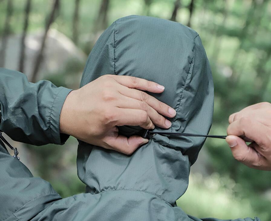 设计合理,薄如蝉翼超轻量,可调节式风帽风帽后设置有抽绳,防风防晒更方便,穿着更舒适,而且下摆内置隐藏式抽绳调节系统,防风保暖,能够通过单手调节,绳索可收起到内部,还有两侧插兜外增加侧兜,使用定制拉链,装载物品安全可靠。