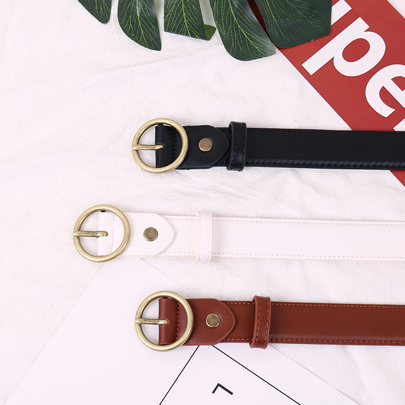 一款简约大气的腰带,能够让你在职场中找回自信。优质的真皮材质,富有韧性。复古的纯色调,打造出百搭的时尚造型。金属圆扣的点缀,尽显成熟优雅的魅力,满满的潮流气息。多孔的设计,满足各种身材的需求,令你瞬间气场满分!
