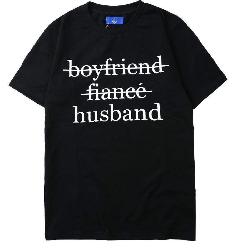 胸前的印花先是划去了boyfriend、girlfriend,接着又修改fiancé和fiancée成了husband与wife,正是象征着爱情不同阶段恋人们之间的称谓,具有个性的同时带有甜蜜,印花优选材质,持久度好不易脱落。