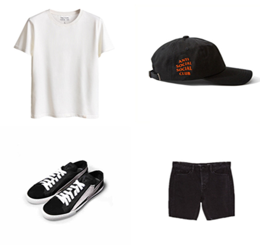 夏天,短袖体恤应该是出镜率最高的一件单品了。马登工装这款经典圆领T恤采用白色色系布料制作而成,造型百搭,头戴黑色英文字母印花鸭舌帽,下身可以选择一件纯黑色五分休闲裤,脚踩一双黑色闪电平底休闲鞋,打造经典黑白酷帅造型。