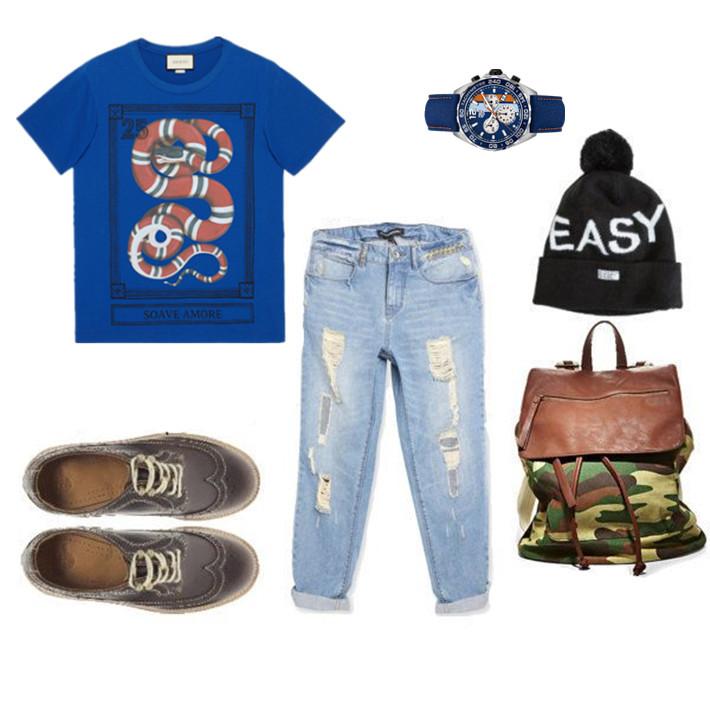 这款蓝色的手表在外表上独特别致,建议搭配一款相同色系的T恤,这样会使得整体更加的协调统一,同时更能彰显出手表的亮点。再搭配一条浅色的牛仔裤,轻而易取就能凸显出穿者与众不同的穿搭品味,尽显青春靓丽的气息。整体搭配起来,休闲舒适又不失潮流时髦。