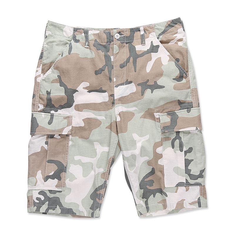 采用迷彩经典时尚元素,添加了休闲运动感。经典迷彩、白迷彩、沙漠迷彩三种颜色可选,满足不同搭配、审美的需求。两边设有口袋,兼具实用性和美观性。同时,口袋上复古徽标镶嵌,更添复古风味,恰到好处的长度,清爽显瘦。