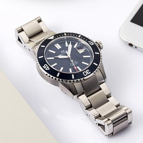 简约中不乏大气之美的这款男士手表,用深蓝色调修饰而成,时刻彰显尊贵优雅气息。蓝宝石水晶镜面细腻打磨,坚实牢固凸显品质个性。经典齿轮式表冠细节,更方便调节。