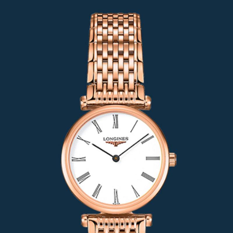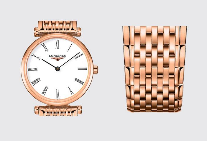 浪琴推出的这款嘉岚系列腕表,造型别致新颖,质感独特,采用人工合成的蓝宝石作为表镜材质,耐刮耐磨损,白色表盘简洁大气,哑光材质不过分张扬的同时又不失质感,表链是红色的镀金,色泽柔和,整体彰显出优雅轻奢感。