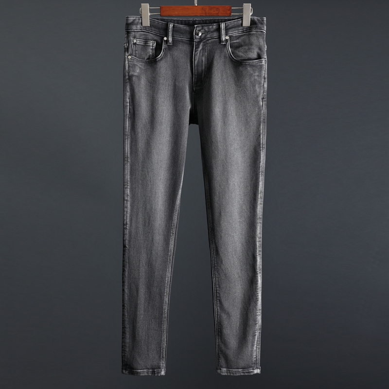 运用立体剪裁的工艺手法打造出流行的中腰版型,迎向韩流的小直脚细节款式展现腿部的力量感,再加上稳重成熟的黑灰色,细腻的处理有着相当真实的复古味道。车缝裤腿露出坚实的脚踝,小脚设计更是使裤子突出一份前卫的质感。