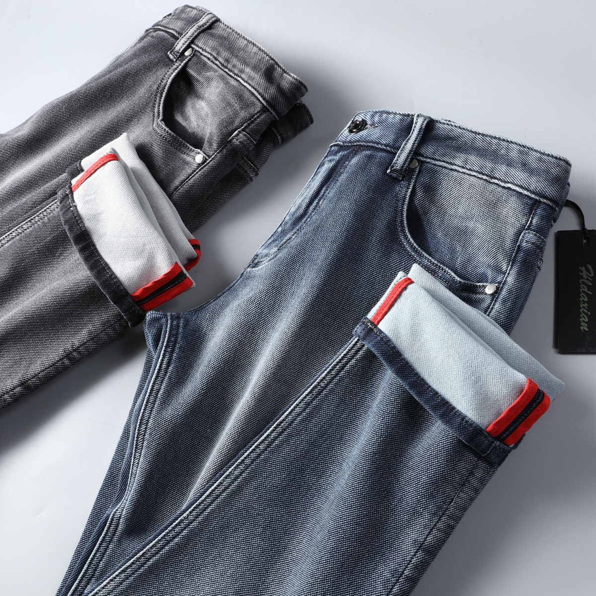 高腰设计,拉长身材比例。高腰牛仔裤,显瘦显腿长。直筒裤型,修饰腿部线条。