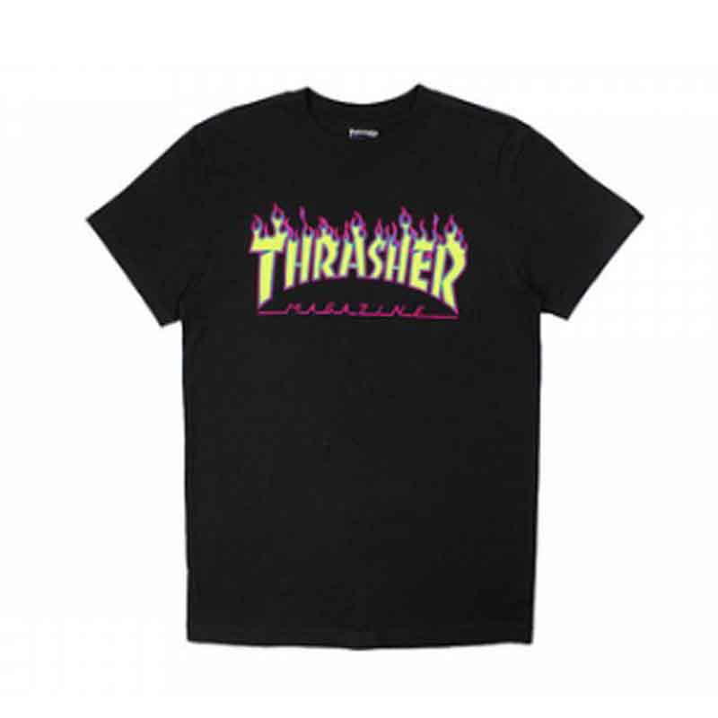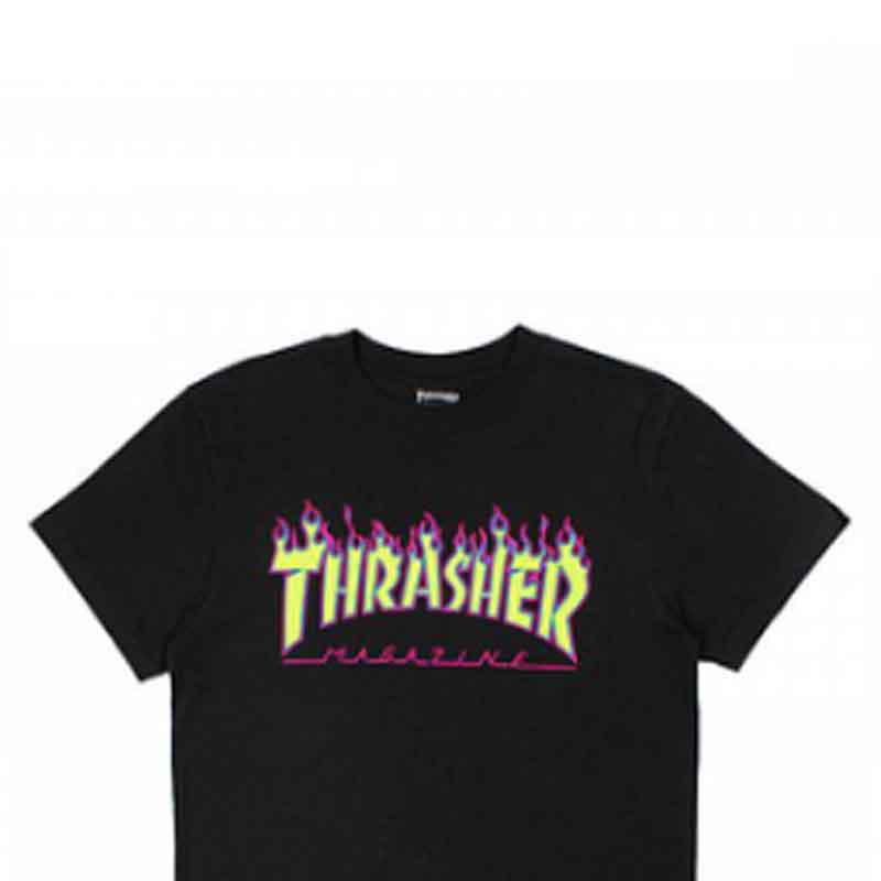 THRASHER 其实是美国著名滑板杂志 《Thrasher Magazine》 旗下的街头品牌,来自于美国西岸旧金山街头的它在设计风格上自然而然也沿袭了一贯的粗犷街头,其中标志性的字母logo成为了图案的设计主角,缔造出个性的街头潮流感。