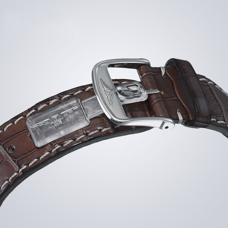鳄鱼皮打造的皮带,柔软透气,令佩戴加倍舒适,外观设计时髦有型。LOGO标识表盘设计,为手表增添深度与内涵。手表气质淡雅清澈,三根指针再加上一个端秀的日历窗,不多不少,恰到好处,完美的诠释了优雅内敛的品味。