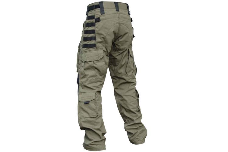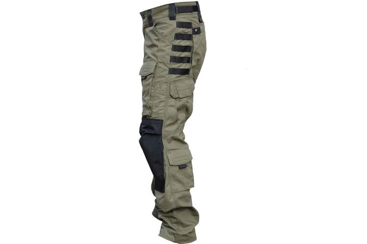为加强对膝盖部位的保护,这款战术长裤在膝盖部位配置了一副ABS护膝,通过魔术贴系统固定,可随时取下,简单方便。腰头、膝盖和脚口位置均具有魔术贴,可根据个人习惯进行调节,还可以有效防止蚊虫所带来的困扰。