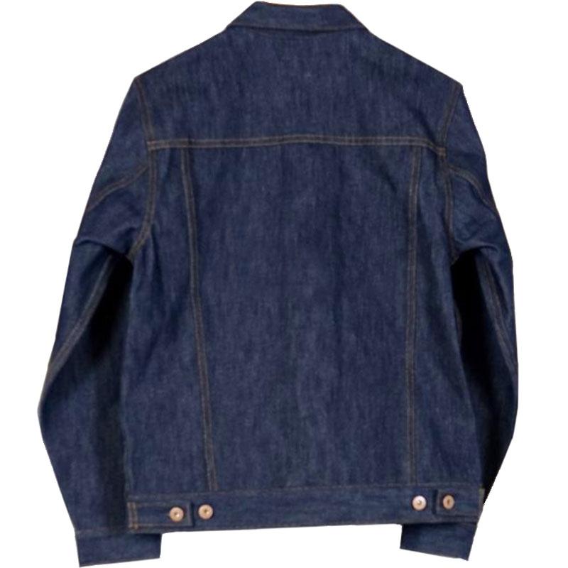 纯正美国制造的原色三代牛仔夹克,采用经典的双环锭纺无赤耳丹宁布料,靛蓝渲染,颗粒效果亮眼独特;饰以精致的红铜五金纽扣,细节之处无不展现一流做工,突显复古玩味;融合现代审美的修身廓形设计,最大限度彰显了欧美风的青春潮流范。
