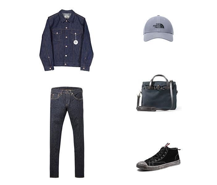 经典的美式硬派工装风夹克,搭配上追求简洁利落即可,下身选择一条天然染的修身牛仔裤,蹬上高帮帆布鞋,打造硬汉风格的同时略显刚中带柔,突显多重型男气质,挎上欧美复古单肩包,再来一顶北面鸭舌帽的加持,潮流有范。