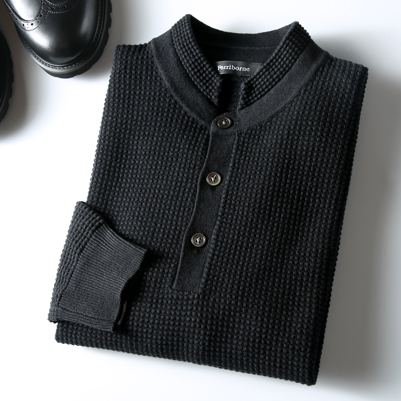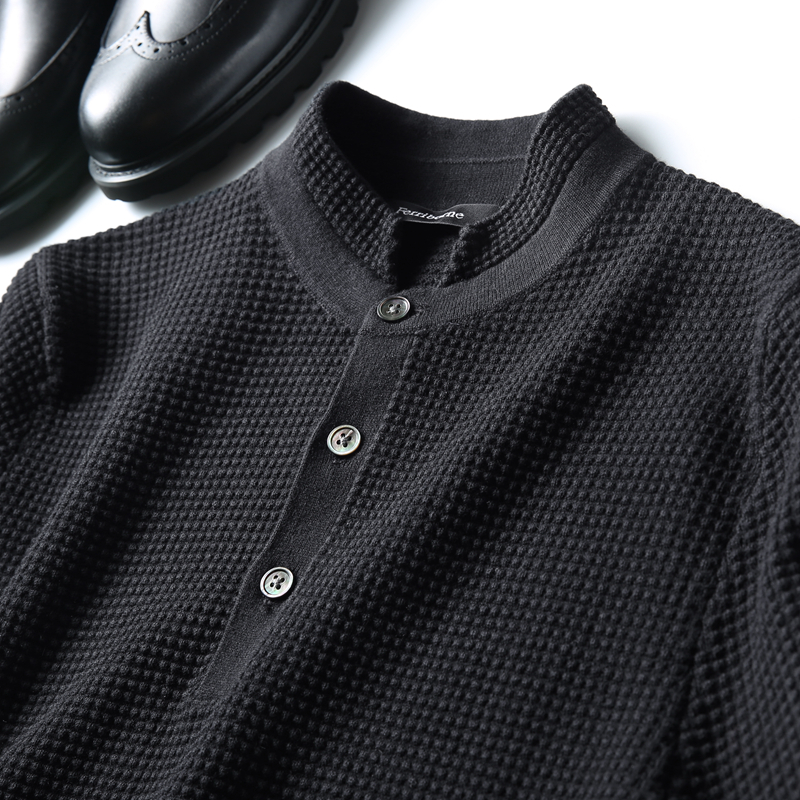 羊毛、棉混纺,中等厚度,上身亲肤舒适。