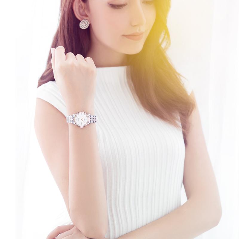 不同形状的表盘带来的穿搭效果是不一样的,例如方盘的设计比较适合成熟女性的穿搭,干练又清爽,而一般腕部线条感比较粗壮的不建议佩戴方形表盘的手表。而天王表的钢带表则选用的是经典耐看的圆形表盘,圆形的表盘它的穿搭包容性会更好一点,不仅不挑剔衣衫的风格,而且怎么搭都有型。