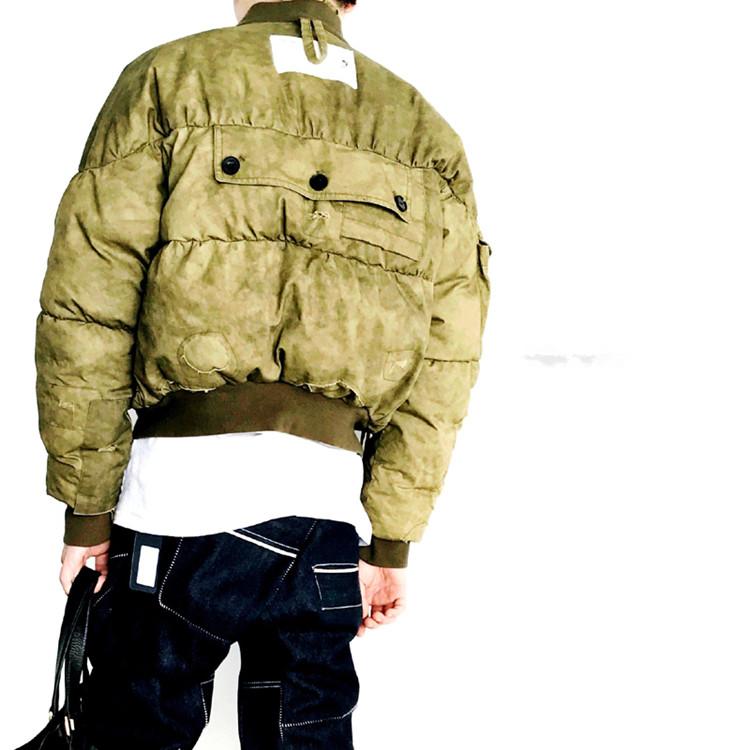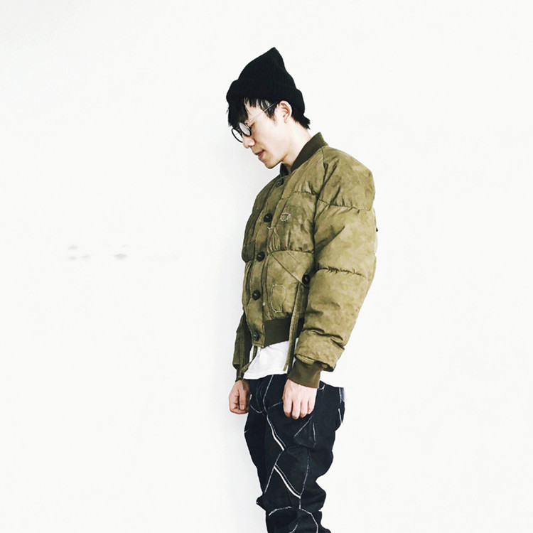 这是一款CHAUNK打造的十分别致的羽绒服,棒球夹克款羽绒服款式的设计,让这款羽绒服颜值更高,重工水洗工艺处理面料搭配军绿色的配色,打造出经典的军装复古风,全手工破洞处理,复古做旧款工艺设计感非常强,设计师匠心独具,以服装产品为语言来进行交流,尽己所能,表达自己对军事复古的理解。