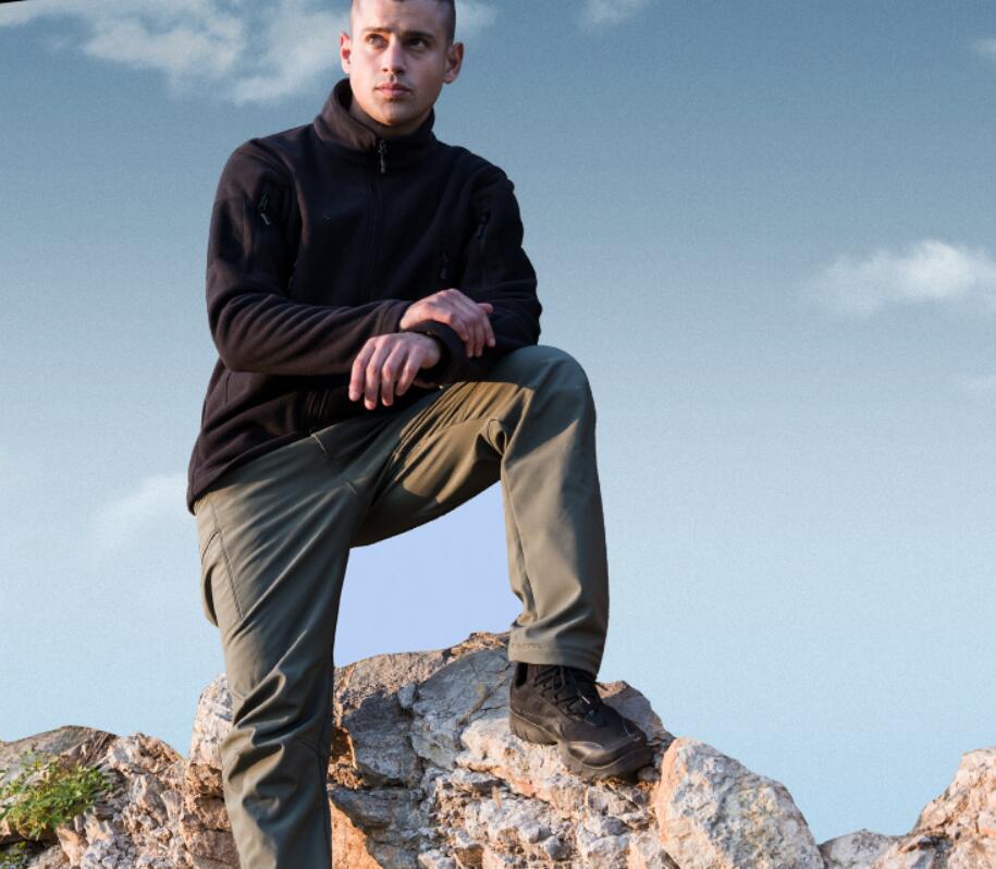 这款户外冲锋裤精选优质纳米防水科技涂层面料,微弹塑型,全方位防泼水,快速适应环境,折叠扩容肚兜设计,立体延展,装载体积无压力,腰部松紧设计,穿着无束缚感,运动自如,收脚设计,战术通勤,随时转换。