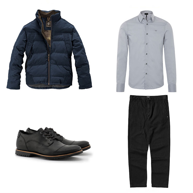 对于商务男士来说,大冬天的不可能总是穿着西装和呢大衣吧,其实深色羽绒服也能给你带来沉稳与干练。这款藏青色羽绒服短款设计,突显利落气质,内搭依旧是通勤不可少的纯色衬衫,下身搭配黑色系显卡和皮鞋,这样的装扮既带出内涵,又充满温暖,一举两得。