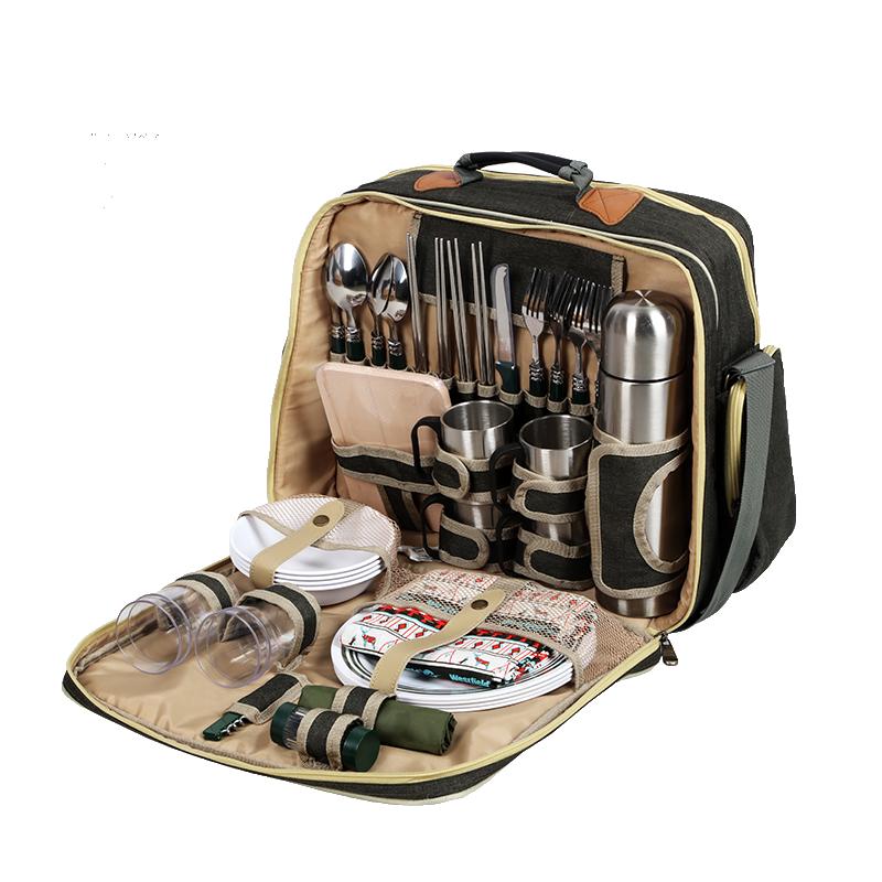 这套豪华餐具内含四人野餐餐具,让你的野餐更方便无忧。采用多仓结构,内含全套野餐用具,你户外携带的物品都能够分门别类收纳,让你的收纳变得轻松整齐。时尚的彩盒包装,堪称送礼佳品,可以送亲戚,送领导,送朋友,高档大气。