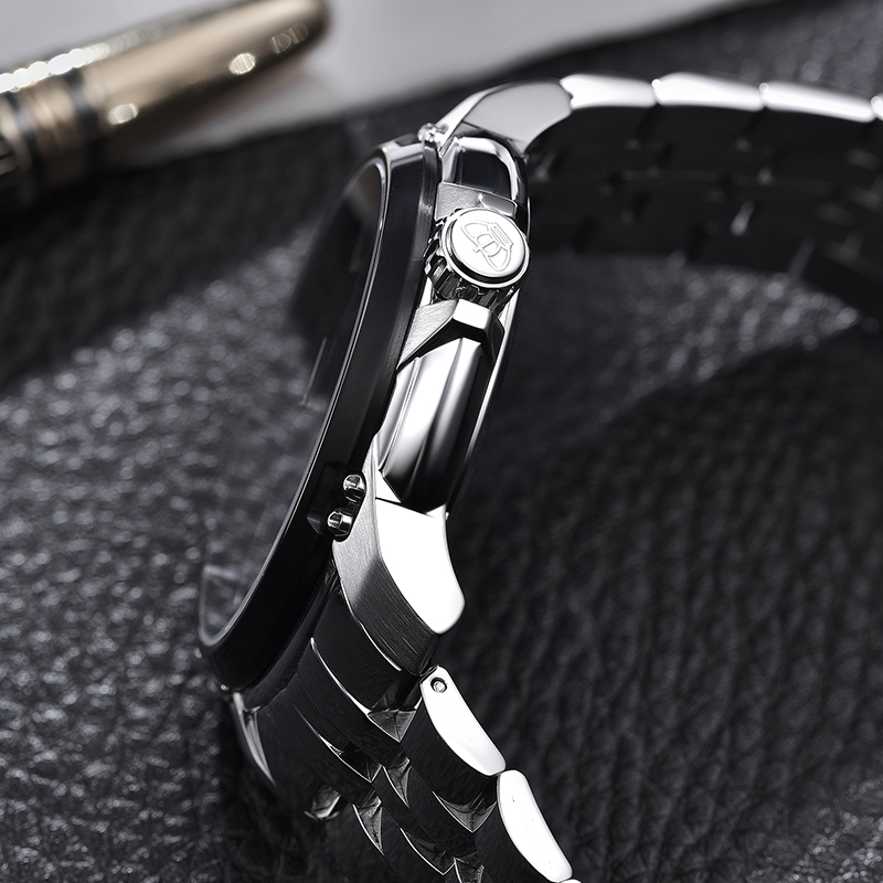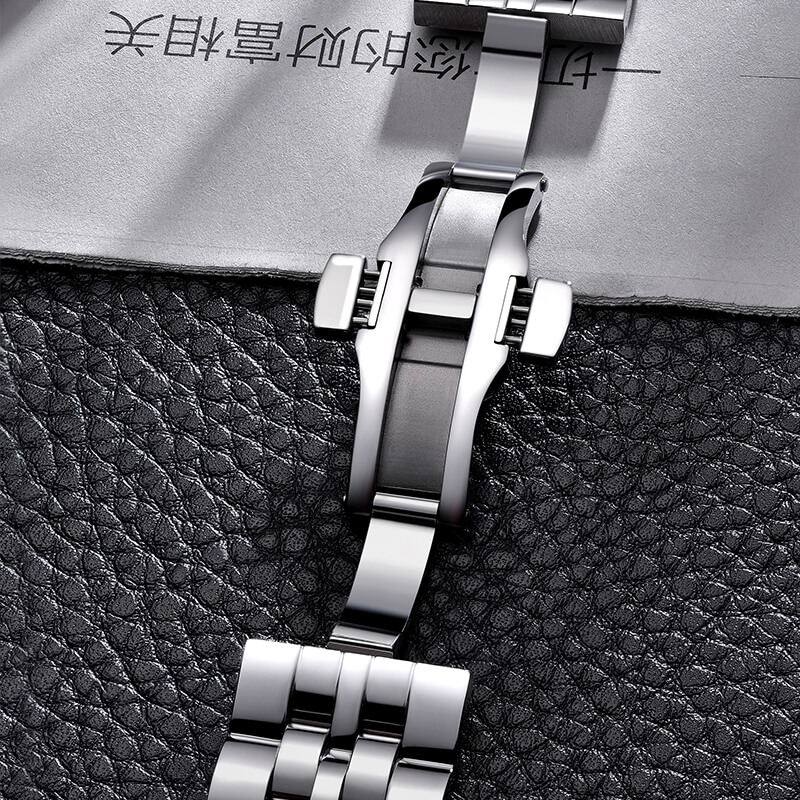 这款男表采用了高端表带,配合精钢表壳,增加了商务气息。石英机芯,独具匠心的表盘罗马数字设计,单独记录分、时、秒,日期窗置于 4、5 点钟方向之间。43mm 的大表盘以及 100m 的防水性能,更增添了休闲运动气息。经典配色,激情四射。