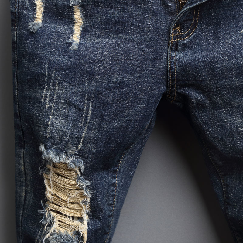 立体裁剪版型,为你打造利落穿搭的同时,加上经典小脚裤腿设计和挺括裤身版型,包容性极强适合所有身型男性,裤身表面的不规则破洞设计,打破单调感的同时吸睛百分百。
