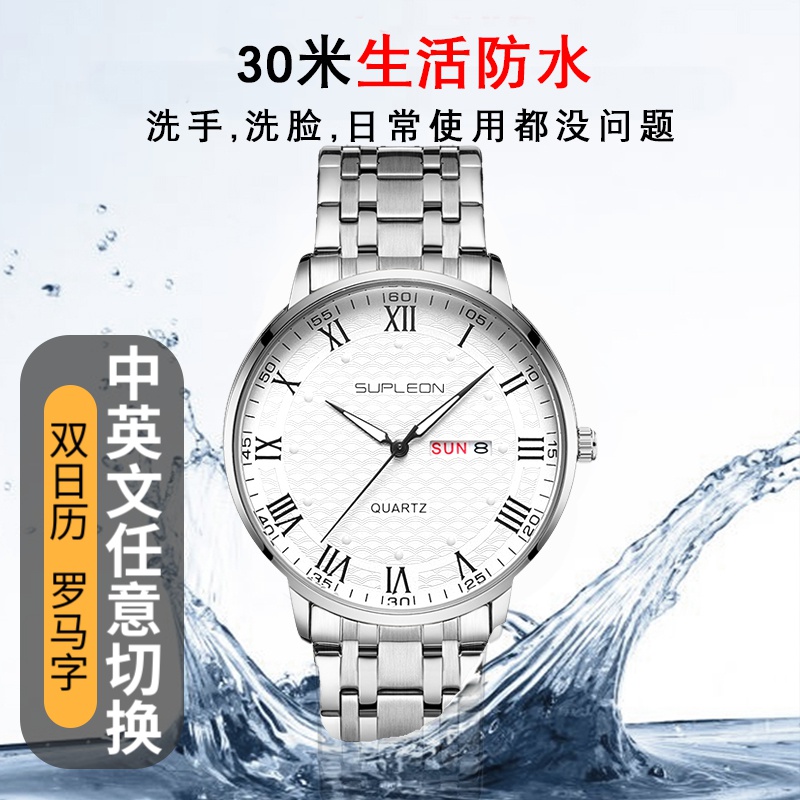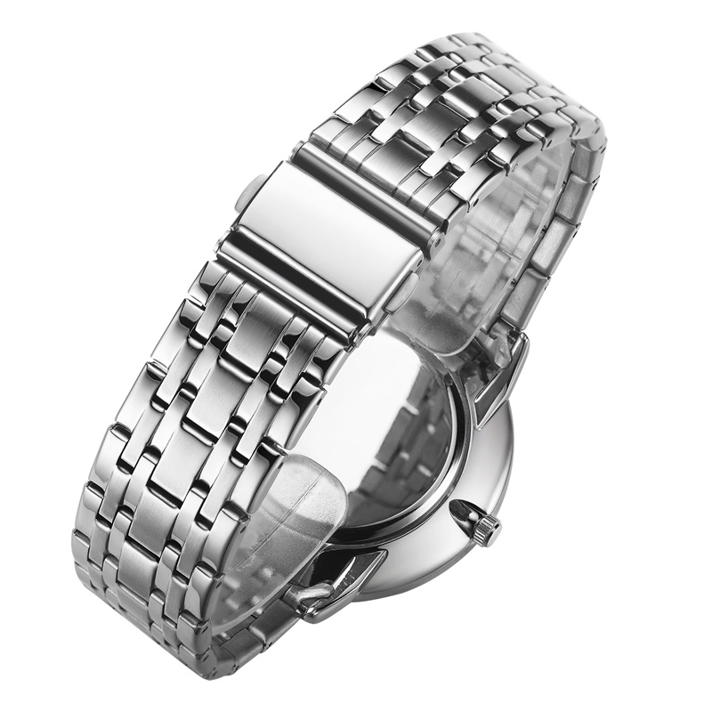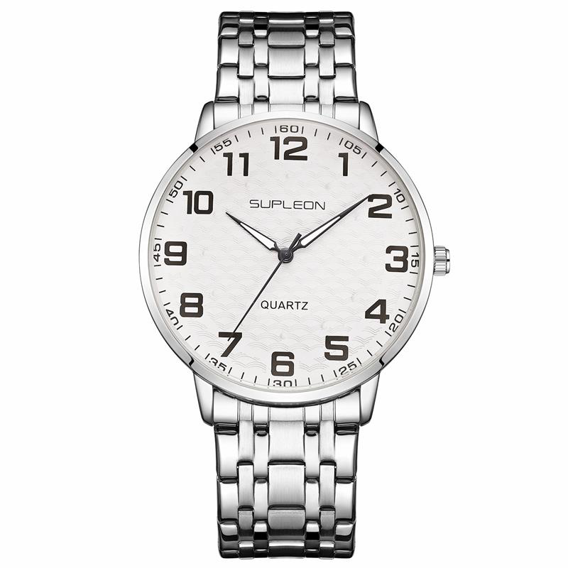 简洁表盘设计,无过多装饰来修饰,反而显得简约大气,时尚大方。加粗加大数字设计,加上防眩晕字面,可使老人清晰的看出、看清时间。进口石英机芯设计,不仅节能、省电、走时准,而且久经耐用。银白色调设计,简洁大气。真空电镀不易褪色。