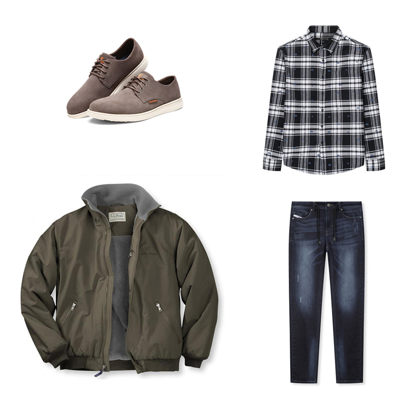 男人首先要有成熟稳重的气质,L.L.BEAN这款休闲夹克就非常适合你,简约大气的版面,加上舒适保暖的材质,整体兼具时尚与实用 ,让你的男神气质更加出众。内搭格纹长袖衬衫,下搭深色修身水洗牛仔裤,脚踩棕色低帮休闲鞋,稳重中透露出丝丝摩登气息。