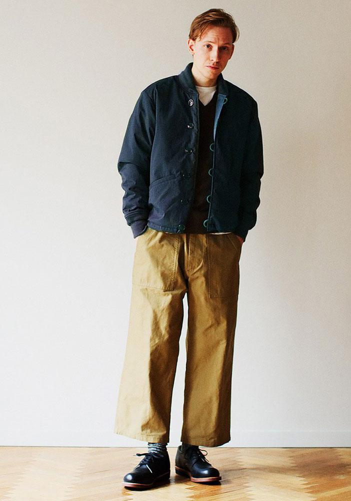 在纯蓝色外套下搭配一条卡其色工装休闲裤,蓝色与卡其色相互碰撞,产生了别具特色的美感,充满帅气动人的青春气息,更显得精神焕发,凸显男性的优雅气质。一双简单的黑色皮鞋作伴,更显男人魅力。外出游玩时,实乃街拍的一道风景线,整体气质更为出众。