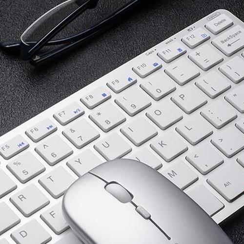 这款鼠标键盘套装内置大容量电池,可以长时间续航待机,电力充沛,可以免去常常充电的烦恼。除此之外鼠标键盘套装中带有的接收器,可以无线连接,让人们免受线缆干扰,桌面整洁美好,为生活增添便利,加上带有的USB接口,易于拔插,可以便于日常充电,十分贴心。