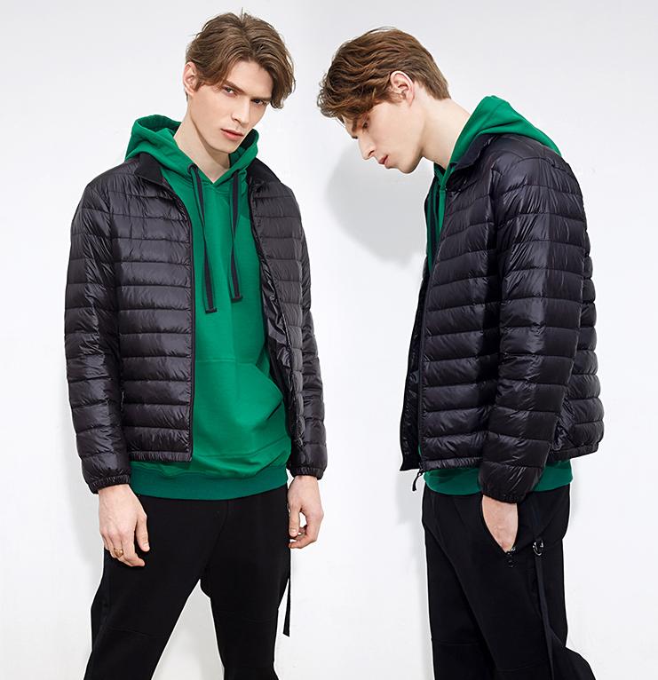 这款羽绒服采用简约版型,能调节身材比例,拉长腿部线条,打造韩范长腿欧巴。绒布立领,展现暖心设计,修饰颈部线条,方便搭配围巾配饰或内搭连帽卫衣,展现挺拔有型的潮男气质。衣身内里自带的收纳袋,可以将羽绒服折叠后塞进自带的口袋内,为你的出行减负加速。辑行的走线工艺,让衣身不显臃肿,不易钻绒,在寒冷的冬天更显型男本色。