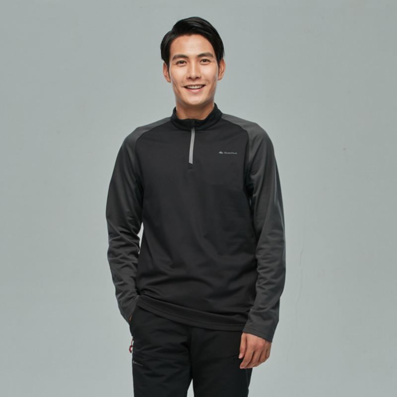 保暖防寒,内面磨毛,在登山时穿着舒适,降温时提供额外保暖。合身剪裁,服装的剪裁能够使登山时活动自如。领口保护设计,拉链防刮。腋下设计网眼拼接面料,可抑制异味。