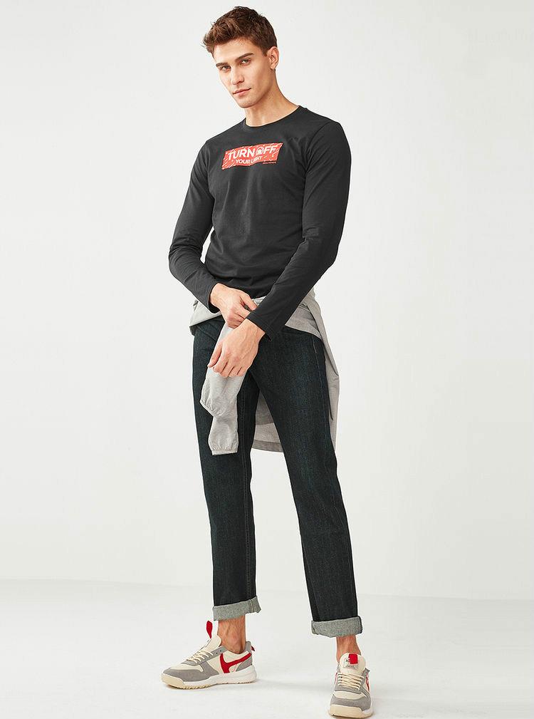 出自佐丹奴的这件牛仔裤,上身搭配一件黑色卫衣,再套上夹克,轻松打造出丰富的层次感,动感气息满满。踩上一双复古感跑鞋,完成街头look的搭配。裤脚可以稍作挽卷,优化视觉比例,个性提升。