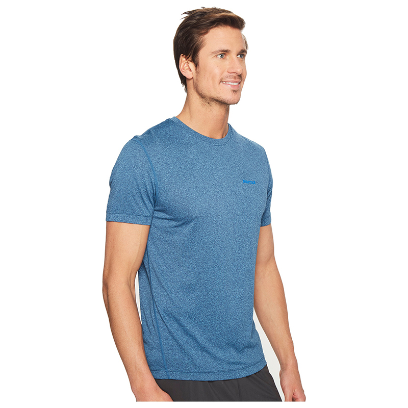 棉与聚酯纤维各占一半的比例,具有棉的柔软质感和聚酯纤维的速干性能,领口及肩部缝线做了包边处理,減少对皮肤的摩擦,侧面无缝线,衣服主体部分一体成型。