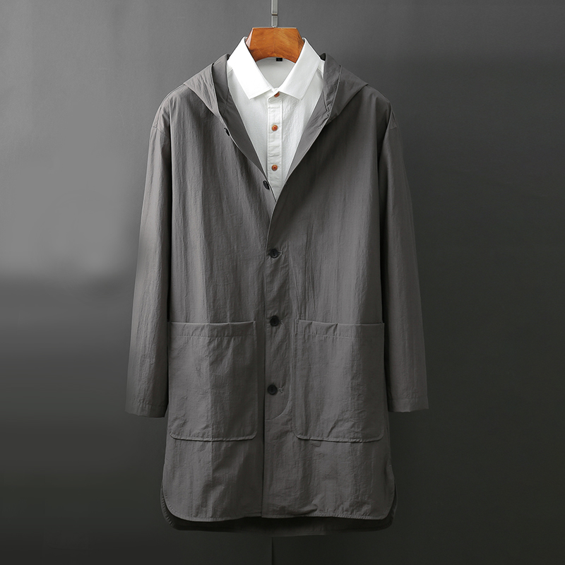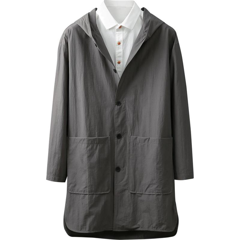 棉加锦纶的优质面料亲肤又透气,舒适爽滑。针织编机,更显档次。休闲款精致剪裁,无论什么风格的男人都可驾驭,而且更显气场。恰到好处的灰色面料凸显商务男士的精致。上身效果好。立体式剪裁,两侧长短不同设计,独特有性格。双侧口袋更加便捷。你的衣柜里必不可少的一件风衣~~