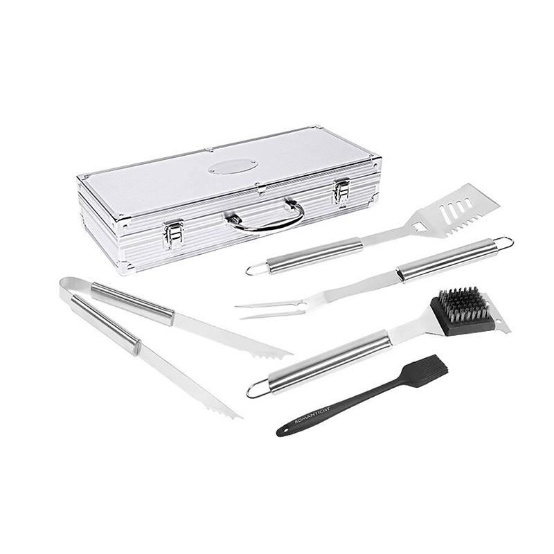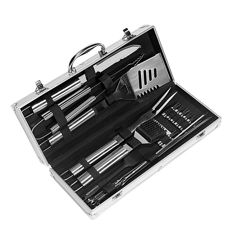 此款烧烤工具套装集合了烧烤叉、烧烤铲、烧烤夹、烧烤刀、烧烤刷、清洁刷、串烤针、玉米叉等多项常用的烧烤工具,专业一站式解决户外烧烤需求。采用了不易生锈的食品级304不锈钢材质,安全健康持久耐用。